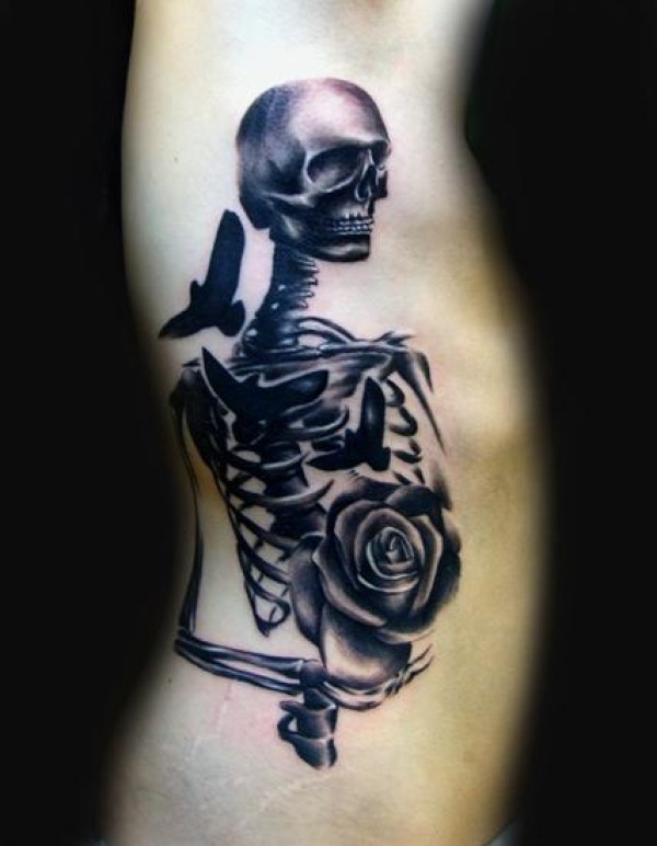 黑色骷髅玫瑰纹身图案大全_玫瑰花纹身图案大全_纹身图吧
