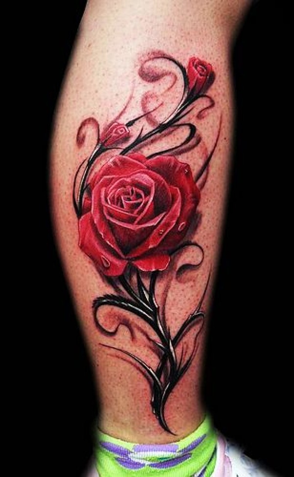湖北恩施纹身图案腿部玫瑰纹身图案图片_玫瑰花纹身图案大全_纹身图吧