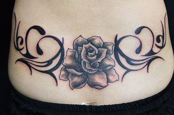 安徽纹身店美女后腰图腾玫瑰纹身图案图片_玫瑰花纹身图案大全_纹身图吧