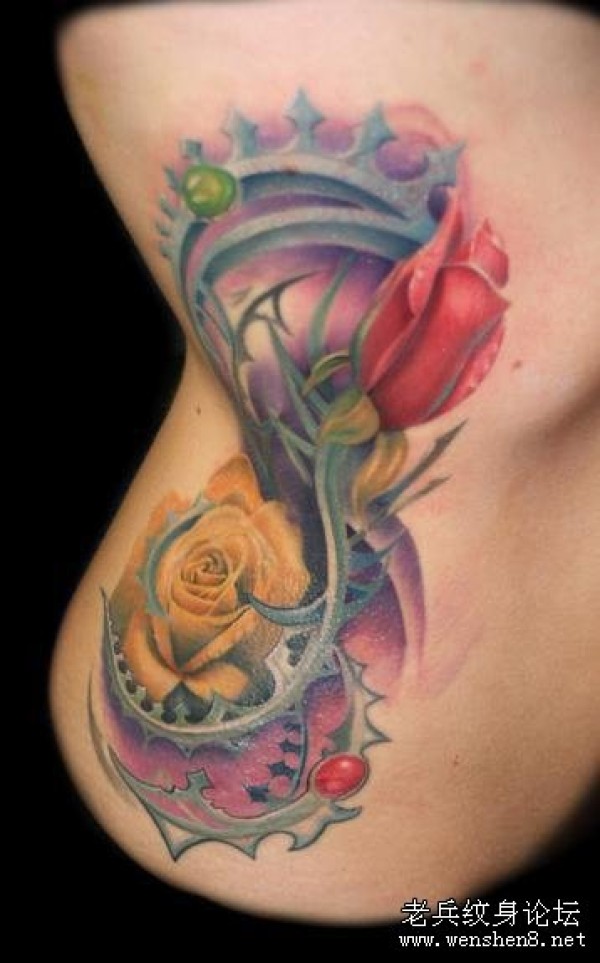 一款侧腰彩色玫瑰花纹身图案纹身图片_玫瑰花纹身图案大全_纹身图吧
