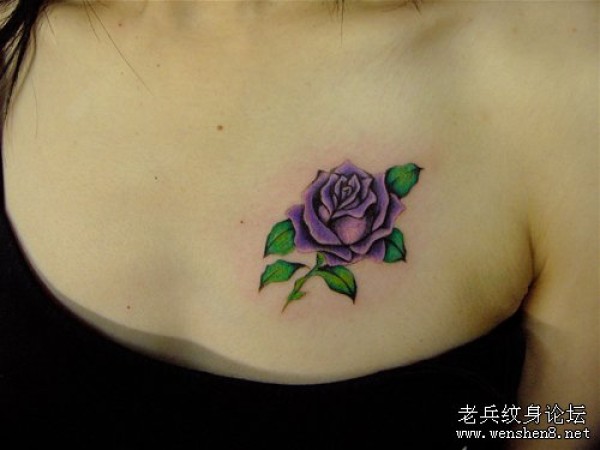 时尚胸部玫瑰花纹身_玫瑰花纹身图案大全_纹身图吧