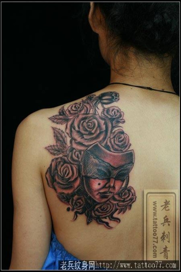 武汉纹身培训学习学校打造一款玫瑰面具纹身作_玫瑰花纹身图案大全_纹身图吧
