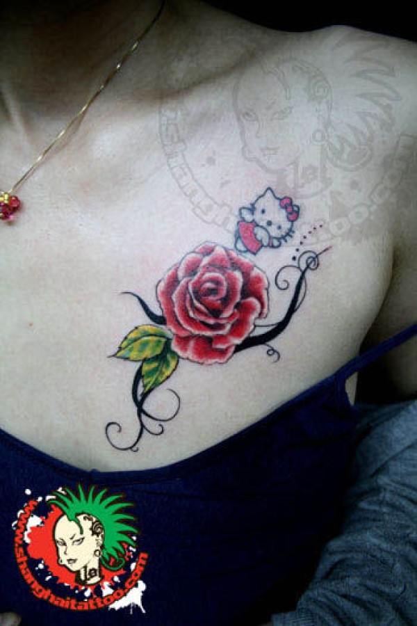 时尚胸部玫瑰花纹身_玫瑰花纹身图案大全_纹身图吧