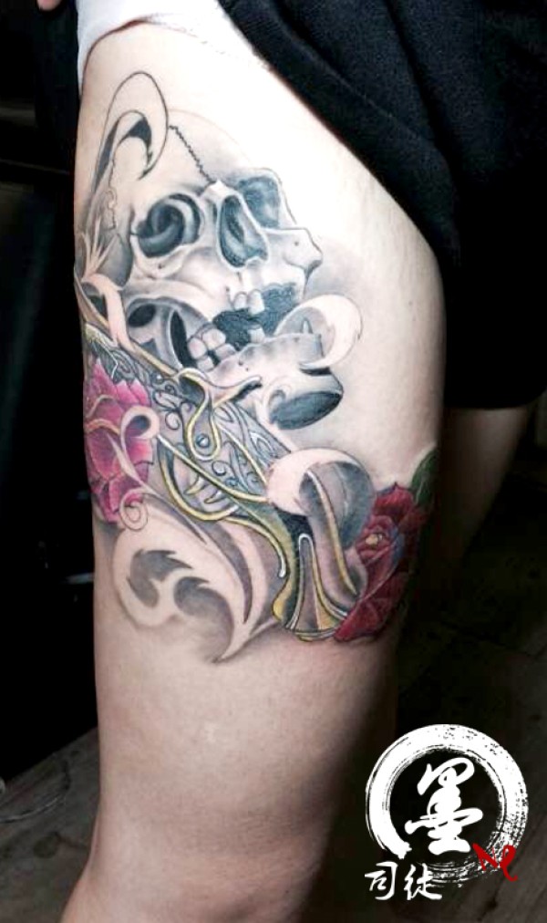 骷髅玫瑰_玫瑰花纹身图案大全_纹身图吧
