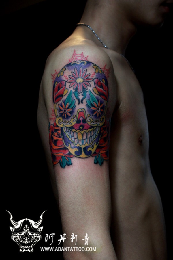 oldschool骷髅玫瑰纹身_玫瑰花纹身图案大全_纹身图吧