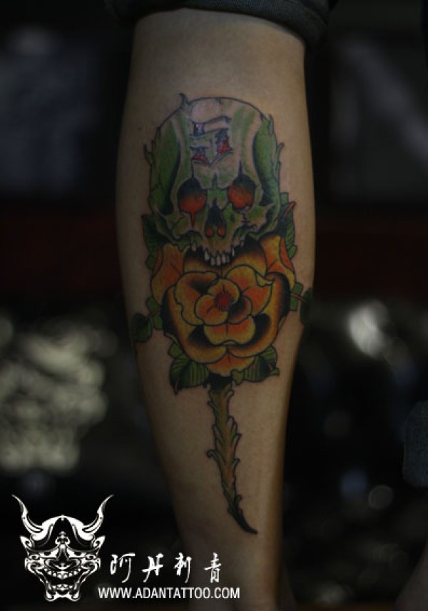 骷髅玫瑰纹身_玫瑰花纹身图案大全_纹身图吧