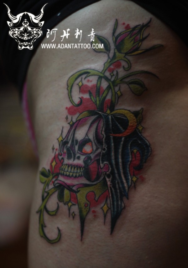 骷髅玫瑰 死神纹身_玫瑰花纹身图案大全_纹身图吧