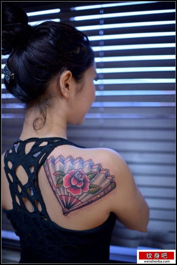 漂亮的玫瑰花扇子纹身图案_玫瑰花纹身图案大全_纹身图吧