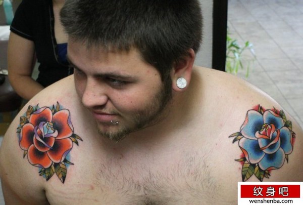 外国胖子肩膀两边玫瑰花两朵_玫瑰花纹身图案大全_纹身图吧