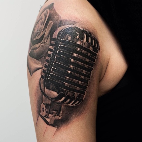 手臂素描玫瑰麦克风_玫瑰花纹身图案大全_纹身图吧