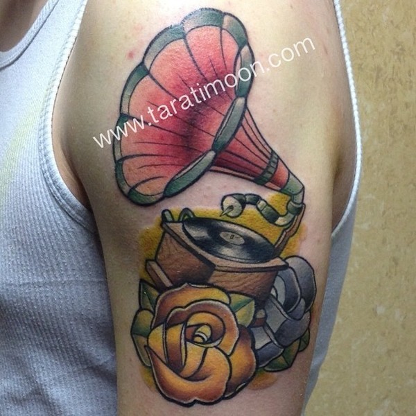 留声机玫瑰纹身_玫瑰花纹身图案大全_纹身图吧