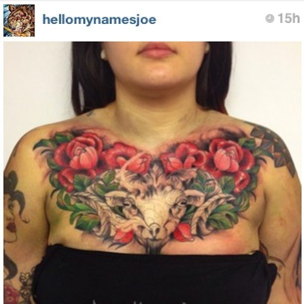 胸前玫瑰山羊大V_玫瑰花纹身图案大全_纹身图吧