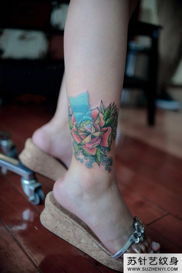 玫瑰时尚脚踝纹身_玫瑰花纹身图案大全_纹身图吧