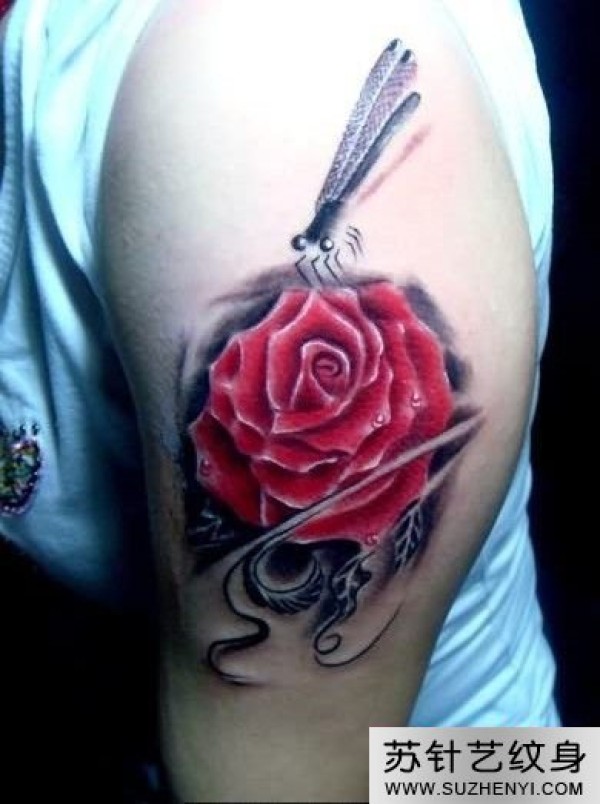 玫瑰与蜻蜓纹身_玫瑰花纹身图案大全_纹身图吧