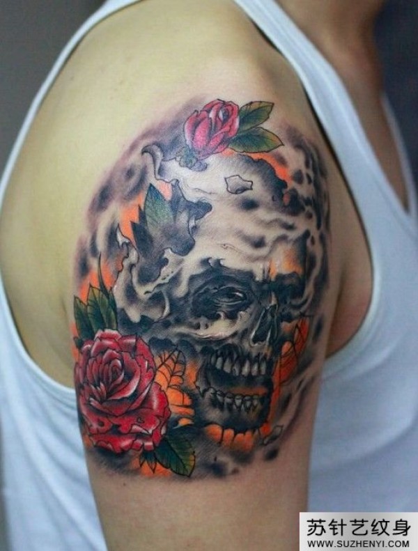 骷髅玫瑰创意手臂纹身_玫瑰花纹身图案大全_纹身图吧