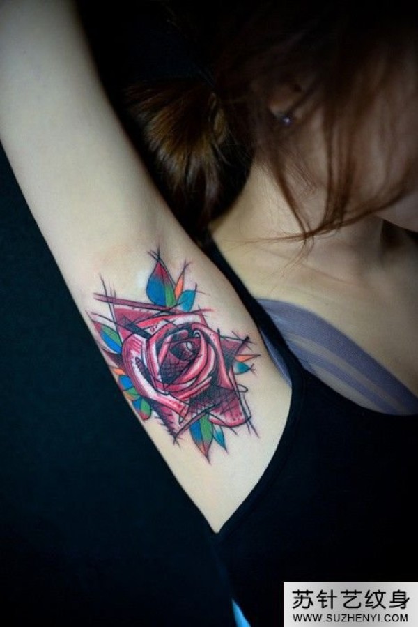 腋下彩色玫瑰花纹身_玫瑰花纹身图案大全_纹身图吧