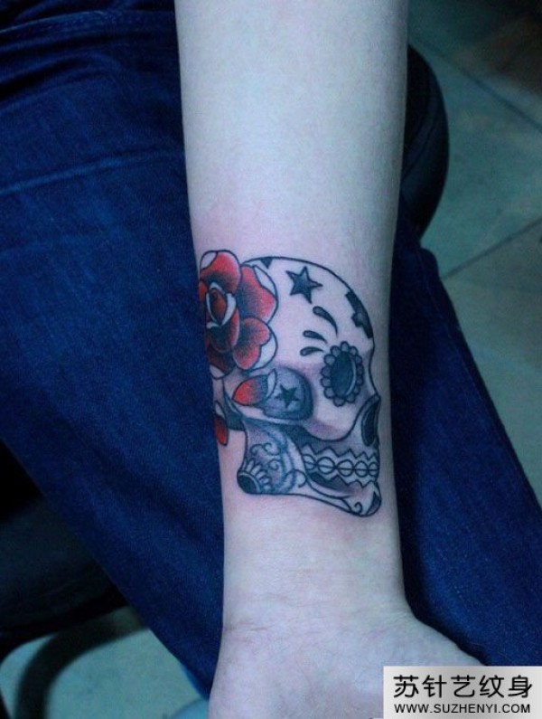 设计骷髅玫瑰手腕纹身_玫瑰花纹身图案大全_纹身图吧