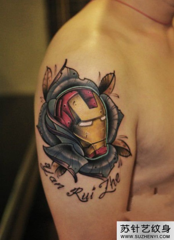 玫瑰钢铁侠手臂纹身_玫瑰花纹身图案大全_纹身图吧