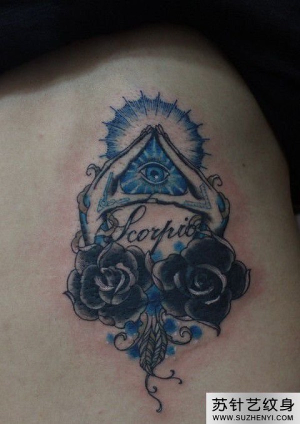 玫瑰三角眼腰部纹身_玫瑰花纹身图案大全_纹身图吧
