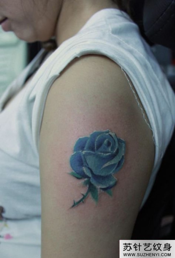 蓝玫瑰手臂纹身_玫瑰花纹身图案大全_纹身图吧