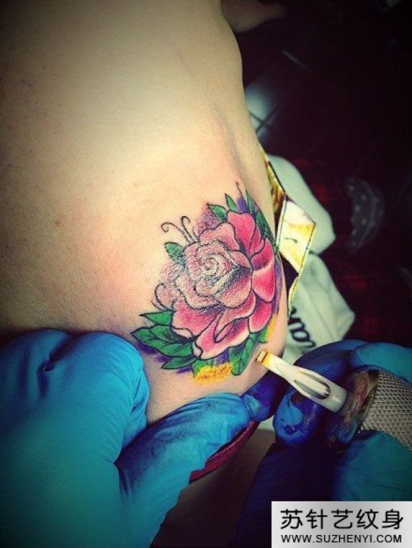耳后小玫瑰纹身图片_玫瑰花纹身图案大全_纹身图吧