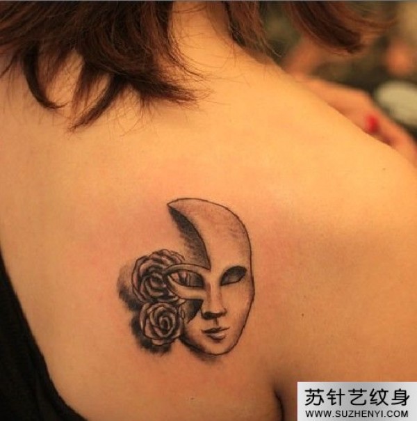 后肩面具玫瑰纹身_玫瑰花纹身图案大全_纹身图吧