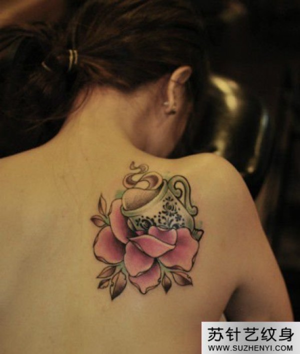 咖啡杯玫瑰肩部纹身_玫瑰花纹身图案大全_纹身图吧