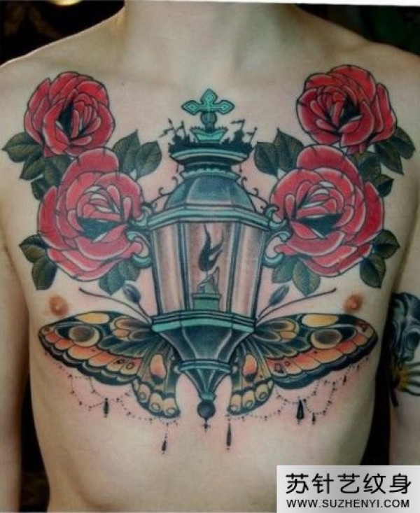 胸前玫瑰路灯纹身_玫瑰花纹身图案大全_纹身图吧