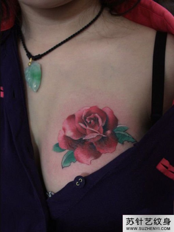时尚胸部玫瑰花纹身_玫瑰花纹身图案大全_纹身图吧