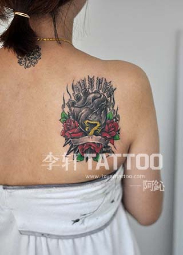 时尚胸部玫瑰花纹身_玫瑰花纹身图案大全_纹身图吧