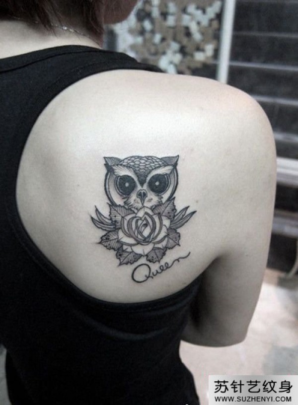 玫瑰猫头鹰纹身_玫瑰花纹身图案大全_纹身图吧