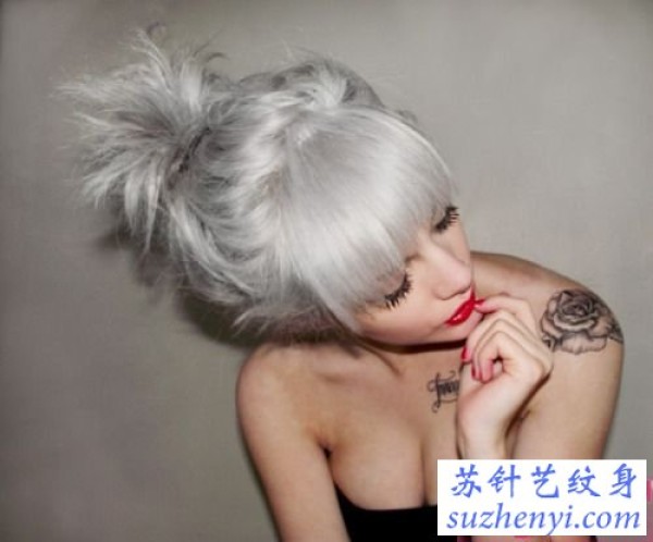 欧美美女肩部玫瑰时尚纹身图案_玫瑰花纹身图案大全_纹身图吧