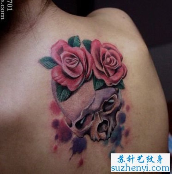 精美的骷髅玫瑰花纹身图案_玫瑰花纹身图案大全_纹身图吧