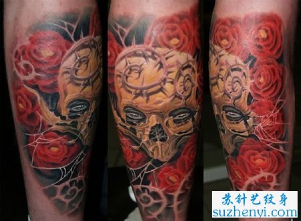 彩色骷髅玫瑰花纹身图案_玫瑰花纹身图案大全_纹身图吧