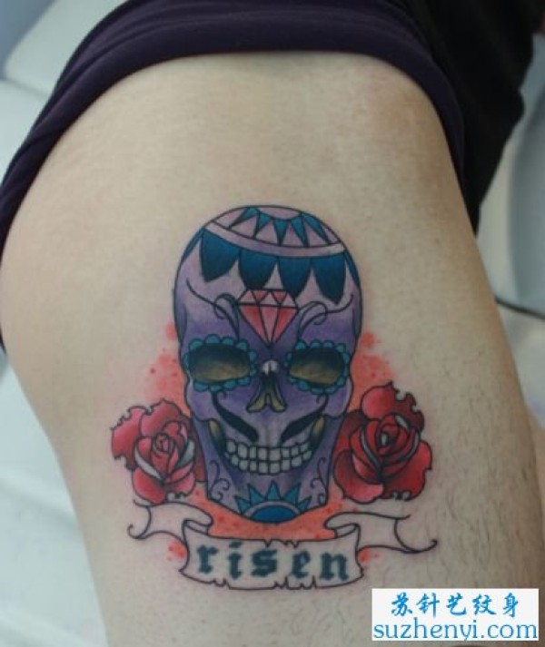 欧美风格骷髅玫瑰花纹身图案_玫瑰花纹身图案大全_纹身图吧