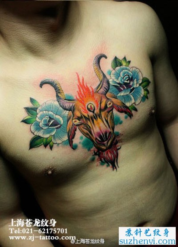 男人前胸羊头玫瑰花纹身图案_玫瑰花纹身图案大全_纹身图吧