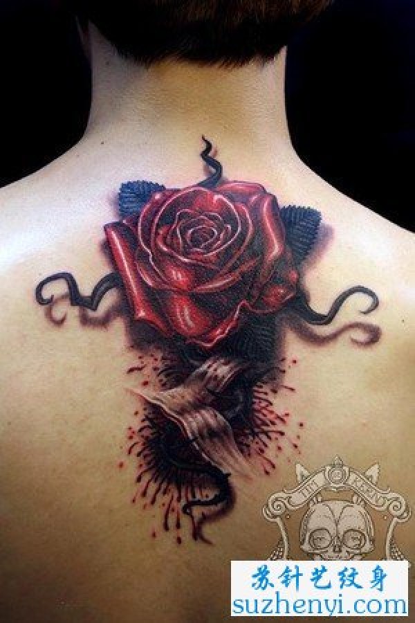 后背玫瑰花纹身图案_玫瑰花纹身图案大全_纹身图吧