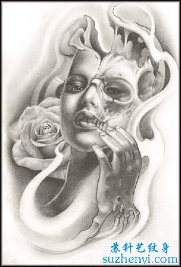 欧美美女骷髅玫瑰花纹身_玫瑰花纹身图案大全_纹身图吧