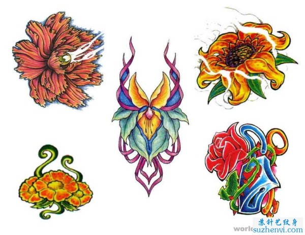 精美的玫瑰向日葵花纹身_玫瑰花纹身图案大全_纹身图吧