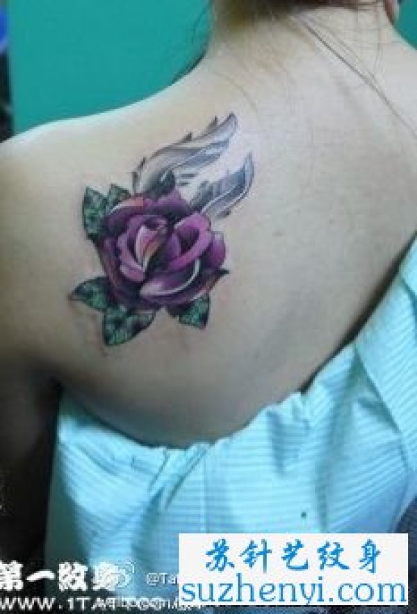 肩部玫瑰纹身图案纹身_玫瑰花纹身图案大全_纹身图吧