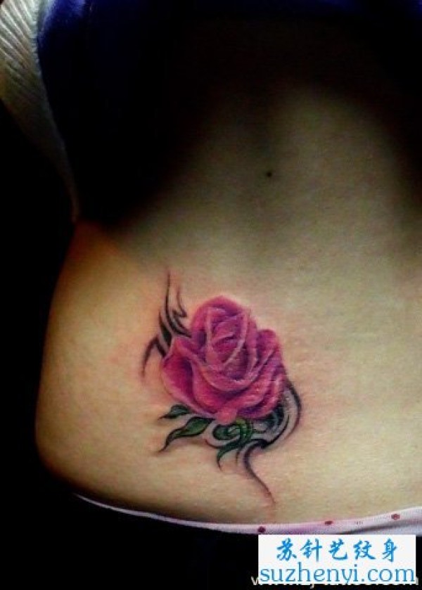 性感蕾丝玫瑰腹部纹身_玫瑰花纹身图案大全_纹身图吧