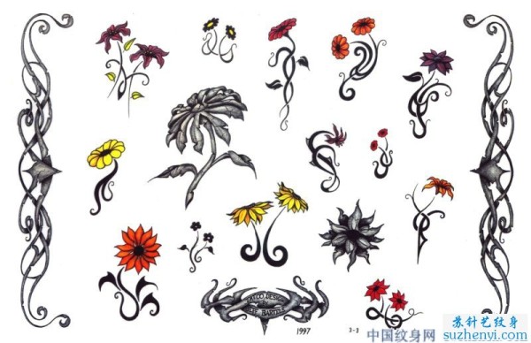 小巧的玫瑰花向日葵纹身_玫瑰花纹身图案大全_纹身图吧