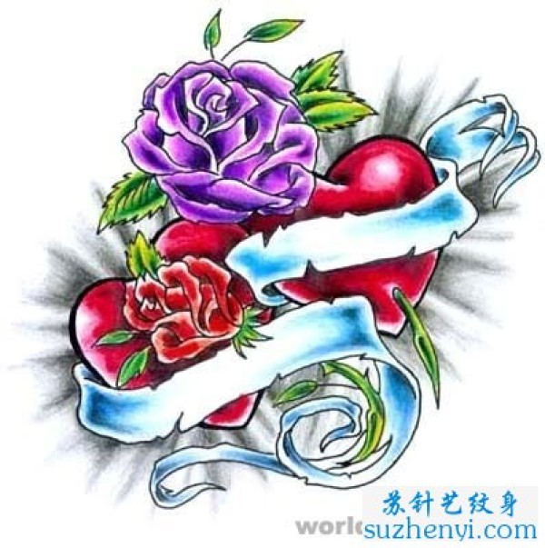 玫瑰爱心纹身图案_玫瑰花纹身图案大全_纹身图吧