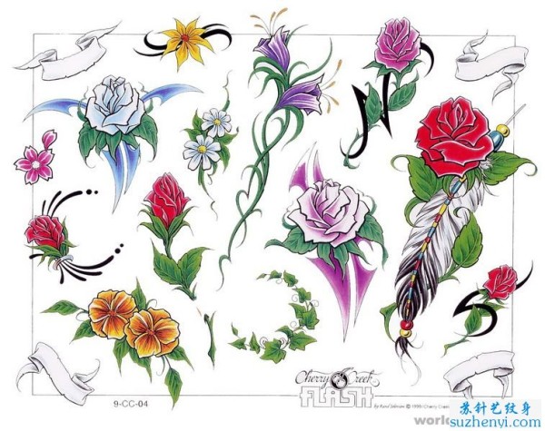 漂亮的玫瑰羽毛纹身_玫瑰花纹身图案大全_纹身图吧