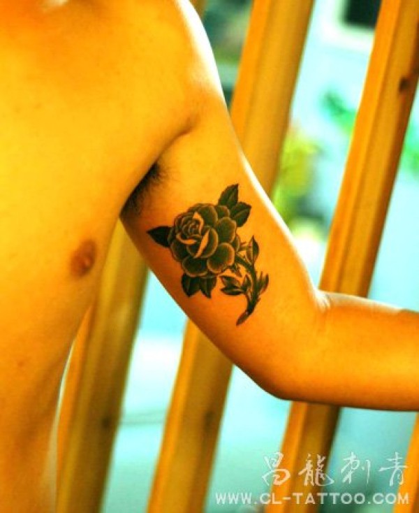 黑玫瑰纹身欧美玫瑰文身School花刺青_男士小图_玫瑰花纹身图案大全_纹身图吧
