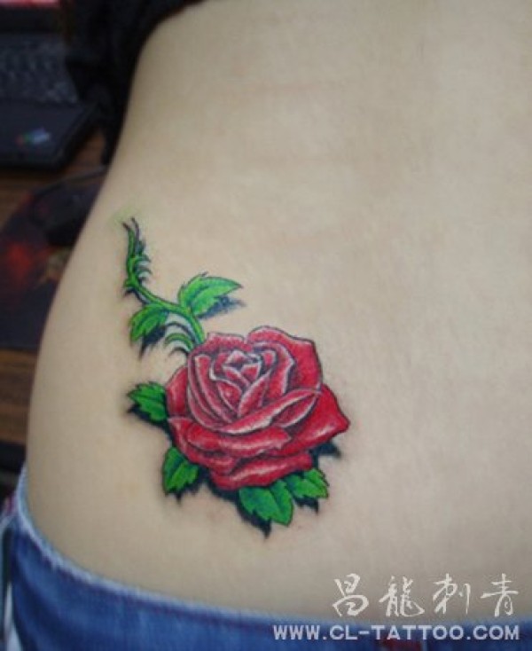 性感蕾丝玫瑰腹部纹身_玫瑰花纹身图案大全_纹身图吧