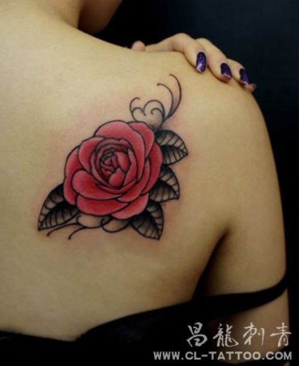 时尚胸部玫瑰花纹身_玫瑰花纹身图案大全_纹身图吧