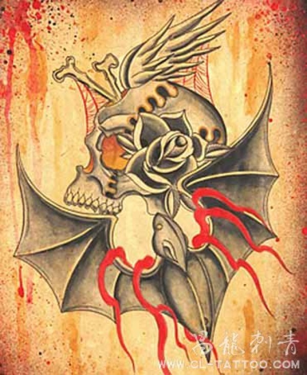 福州蝙蝠纹身骷髅纹身刺青玫瑰纹身图案_经典_玫瑰花纹身图案大全_纹身图吧