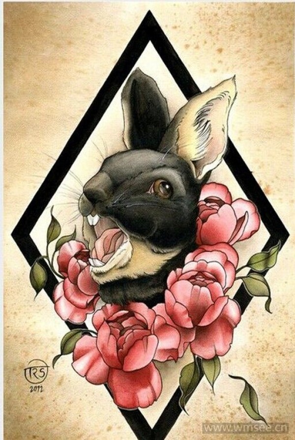 漂亮兔子玫瑰纹身图案_玫瑰花纹身图案大全_纹身图吧