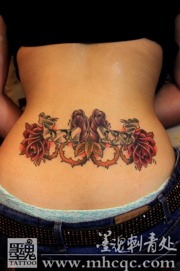 性感蕾丝玫瑰腹部纹身_玫瑰花纹身图案大全_纹身图吧